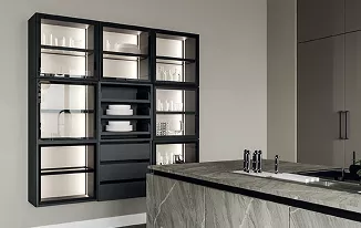 کشوهای نرم‌بازشو، سیستم کابینت تا سقف، نور مخفی LED